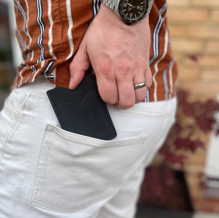 Leather card holder compact 3 slot card wallet (it will also take a couple of folded notes too) will slip into a pocket or bag with ease.