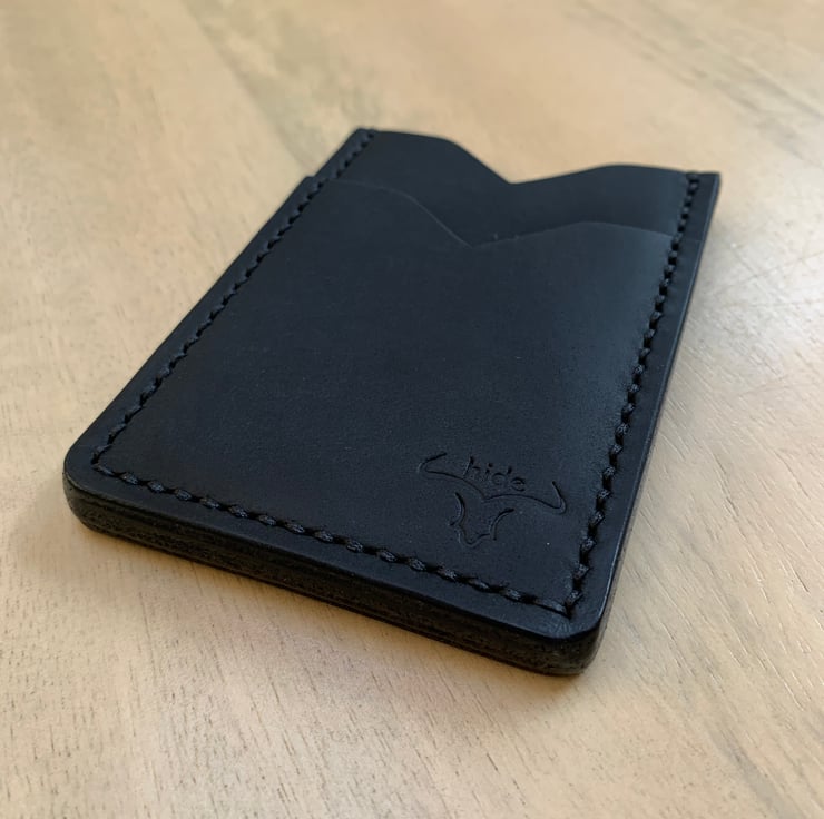 The card wallet is hand sewn using traditional saddle stitching with Ritza Tiger waxed thread in black for superior strength. The edges are burnished to seal the leather so it retains its natural oils and won’t dry out and with care should last a lifetime.