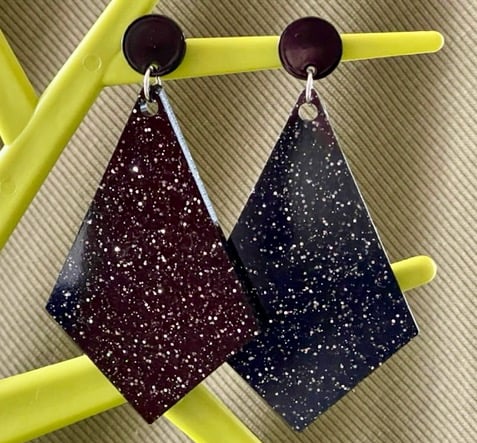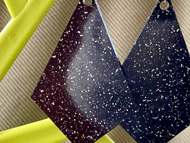 I've used black glitter in resin to great a great disco colour. I've paired them with stainless steel hypo allergenic black resin penny pushback studs. Gorgeous.
