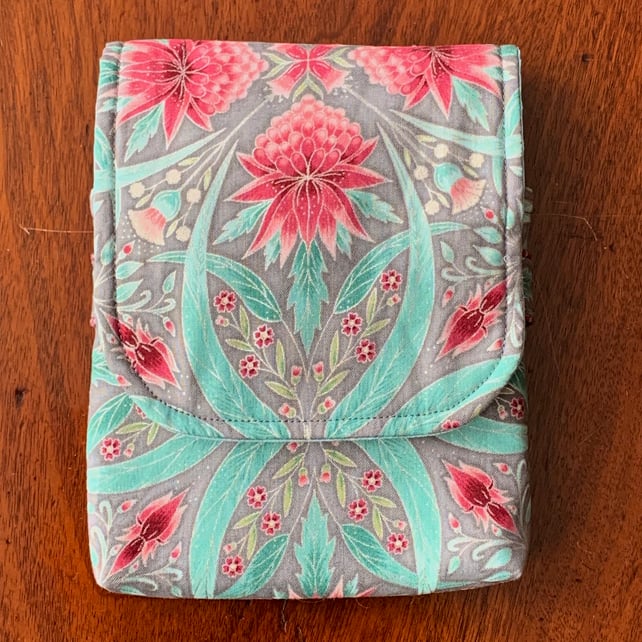 The outer, padded case contains a removable stiffened insert with fabric loops to hold, separate and protect the pens. All visible fabrics are 100% cotton. Three types of interlining provide cushioning, support and stability. The pen slots are 10 cm long so give excellent protection and will house all but the chunkiest of pens, while the tuck-under outer flap adjusts to accommodate extra-long pens. There is space behind the insert in which to tuck a note of pens and inks, plus a small slim notebook. Only a very limited number of each case will be made.