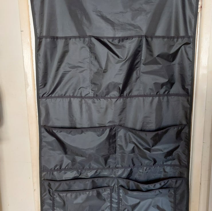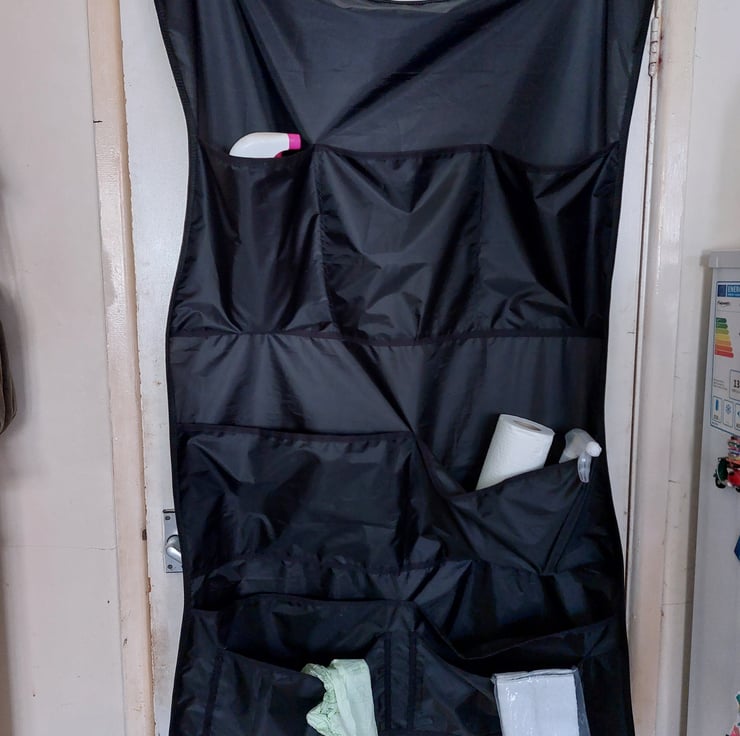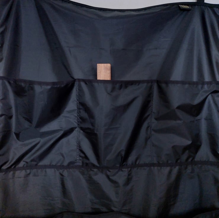 Organise all your grooming supplies and keep everything together using this newly designed stable organiser. Measuring 76cms wide x 120cms in length, pocket depths vary from 23 - 27cms. Made using a waterproof and lightweight ripstop fabric, with polypropylene webbing and chrome hangers.
