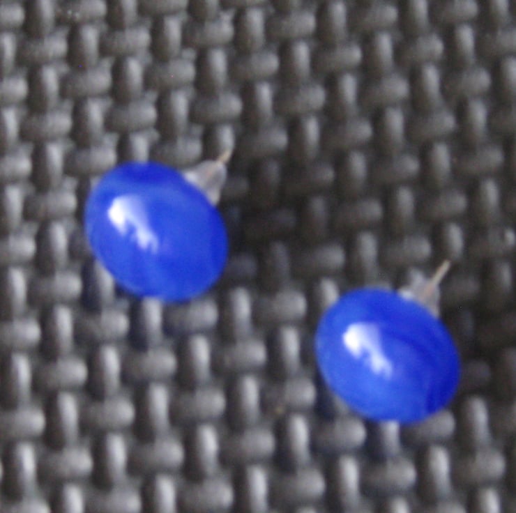 A pair of kiln fused streaky blue opaque Bullseye glass earring studs.