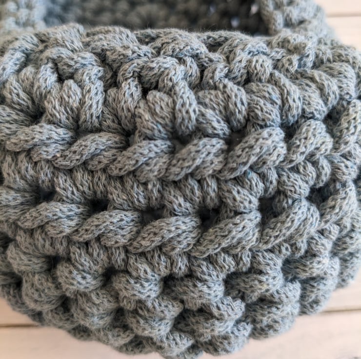 The basket is made from a muted blue recycled cotton braided cord, the shade is called 'sea breeze'. The item is flexible but retains its shape and is a wonderfully tactile design.