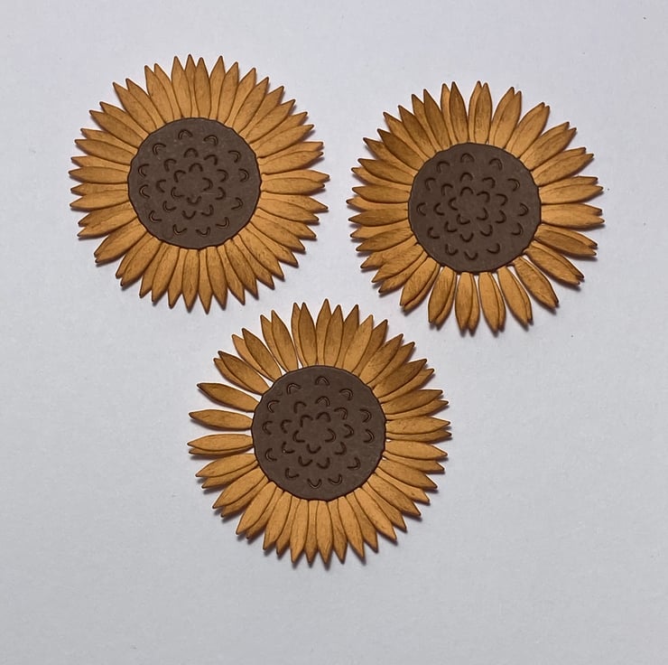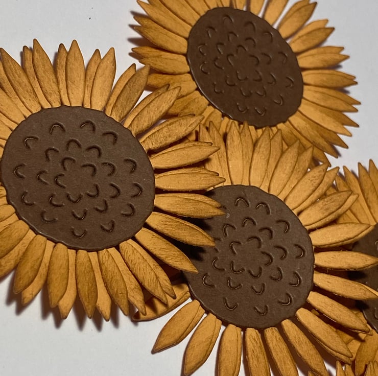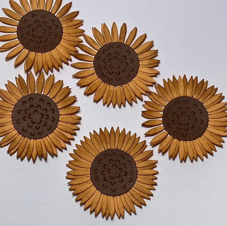You will receive a pack of 5 die cuts sunflowers
