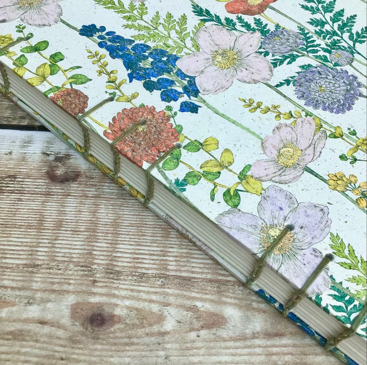 Journal Notebook Hand bound in Coptic Stitch with Garden Flowers Cover