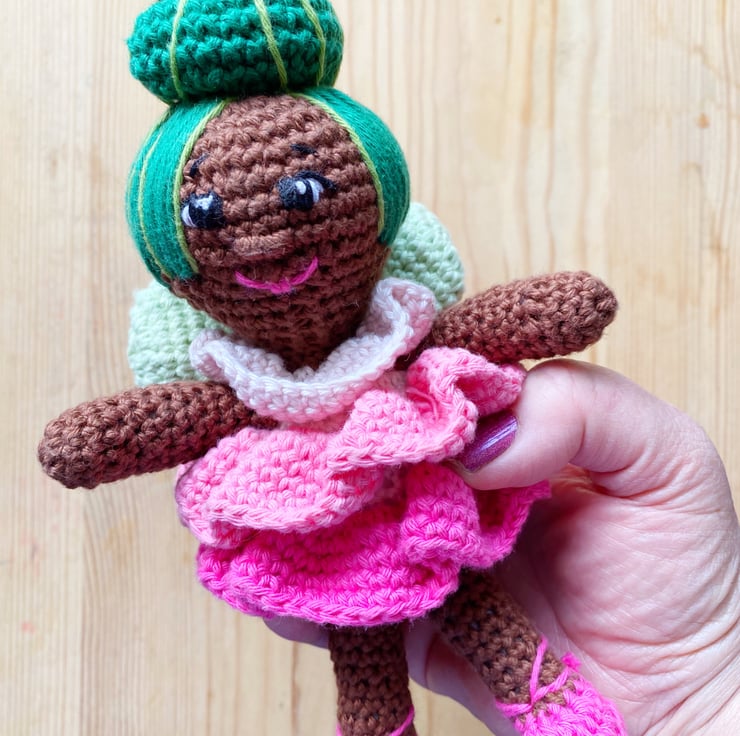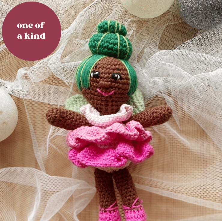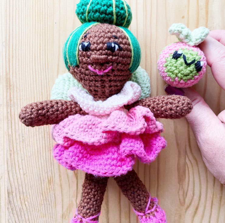 This beautiful fairy is designed and handmade by me, she is made from cotton yarn and is approximately 15cm tall. She come complete with a little buzzy friend.