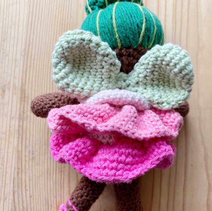 I’m afraid I spend a lot of time dreaming of fairies! I have a bright pink rose that formed the basis of this doll- and being a fan of the designer Molly Goddard I had to give her a flouncy dress