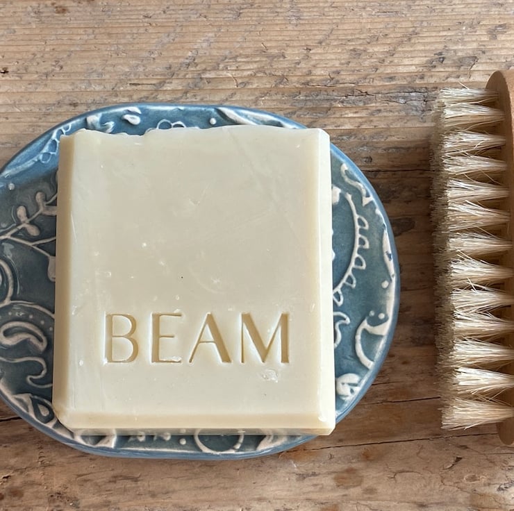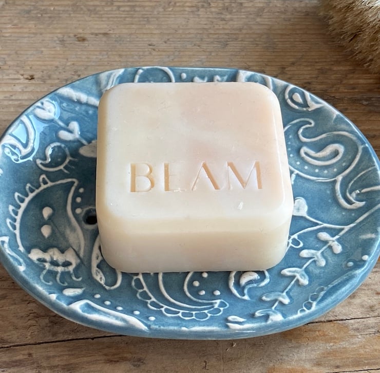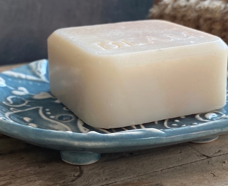 The dish gently curves to hold the Soap which drains easily due to the addition of drain holes and feet.