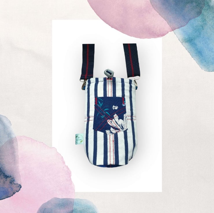 Once upon a time this used to be a t-shirt. The pocket and base are part of a jumpsuit and I thought they looked great together. And with the red stitching you have a cool nautical water cooler! A friend of mine gave me the idea as she like to carry water around with her, especially in the summer time!