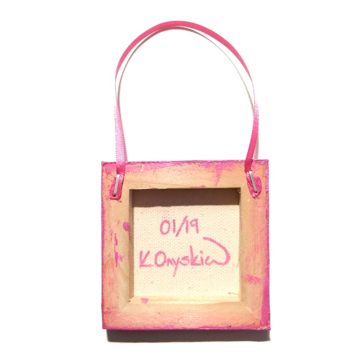 The miniature insect art will either come with a 12cm (4.7") wooden easel for display, which is good for standing on shelves, windowsills or other small surfaces, or will be strung with a ribbon in a colour that matches the painting so it can be hung on a wall (as in the final photo). Just choose with easel or ribbon hanging when you buy.