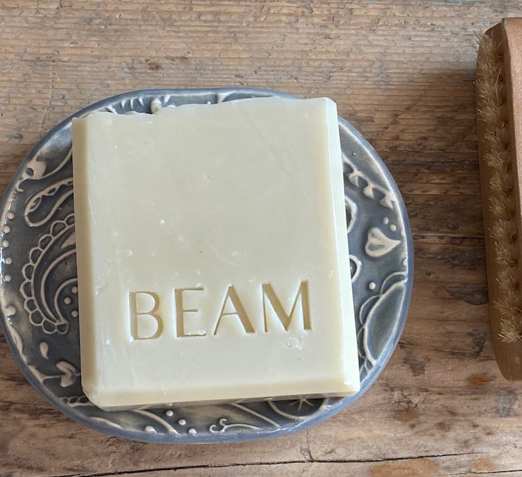 The dish gently curves to hold the Soap which drains easily due to the addition of drain holes and feet.