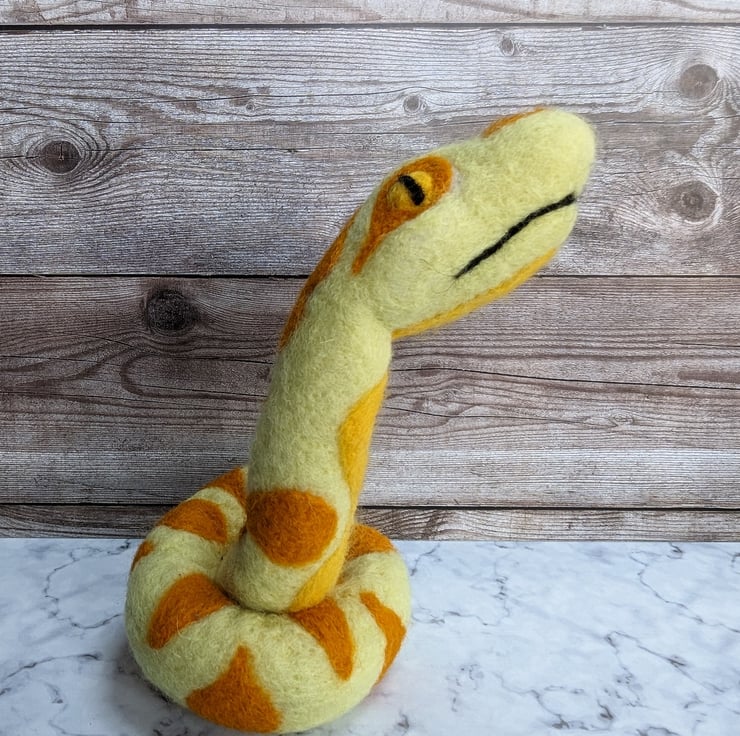 I had made a lot of cute animals and thought there are people out there that like the not so cute animals, I'd made some dinosaurs so thought a snake would go well with them. The fact that the snake turned out quite cute couldn't be helped.