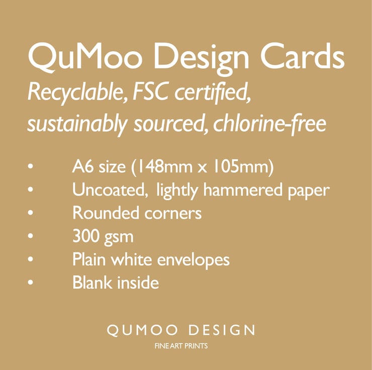 Paper Sizes: The card is A6, portrait (105mm wide x 148mm height) and printed on a single side, (the inside is blank), it is printed on hammered (textured) paper and is supplied with a WHITE envelope.