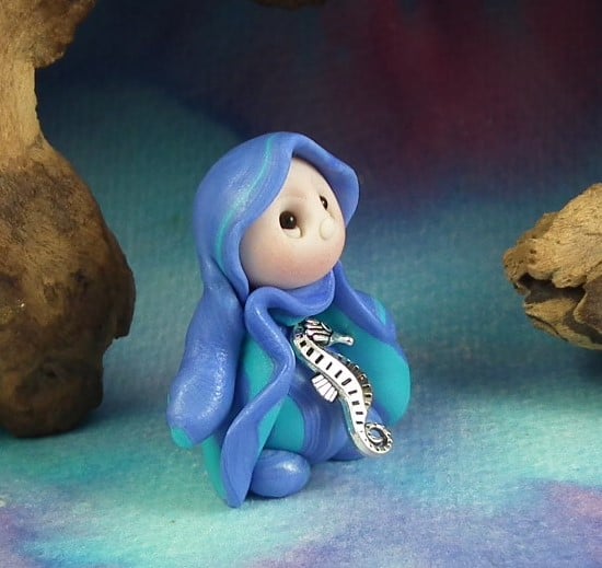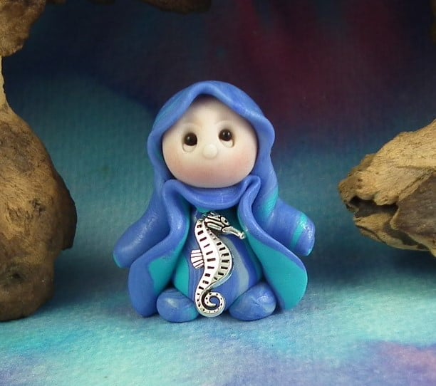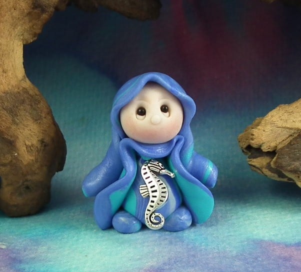 Spring Sale! Joni is a tiny Magical Gnome with flowing robes and silver seahorse ...