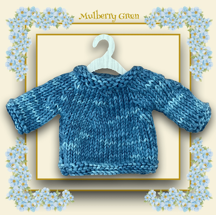 A little washed denim jumper, that looks great with jeans or cords, to fit the Mulberry Green characters. The jumper is hand knitted in Sheepjes faded denim cotton yarn.