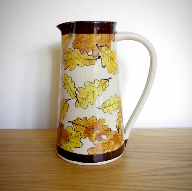 These jugs are hand-thrown on a wheel using stoneware clay and glazes fired in an electric kiln.