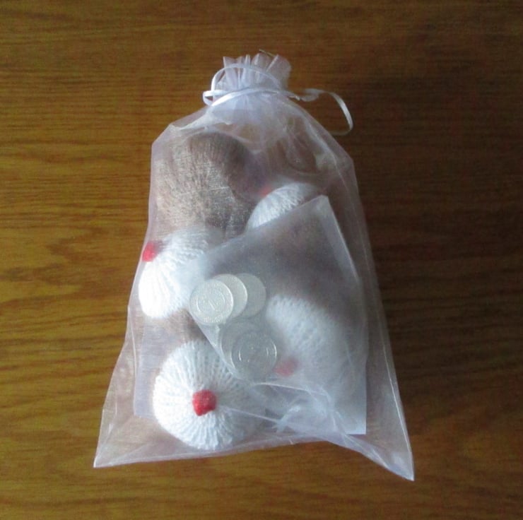 5 hand knitted currant buns (measures approx 8 inch/20 cm at widest point.