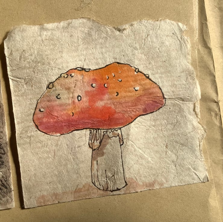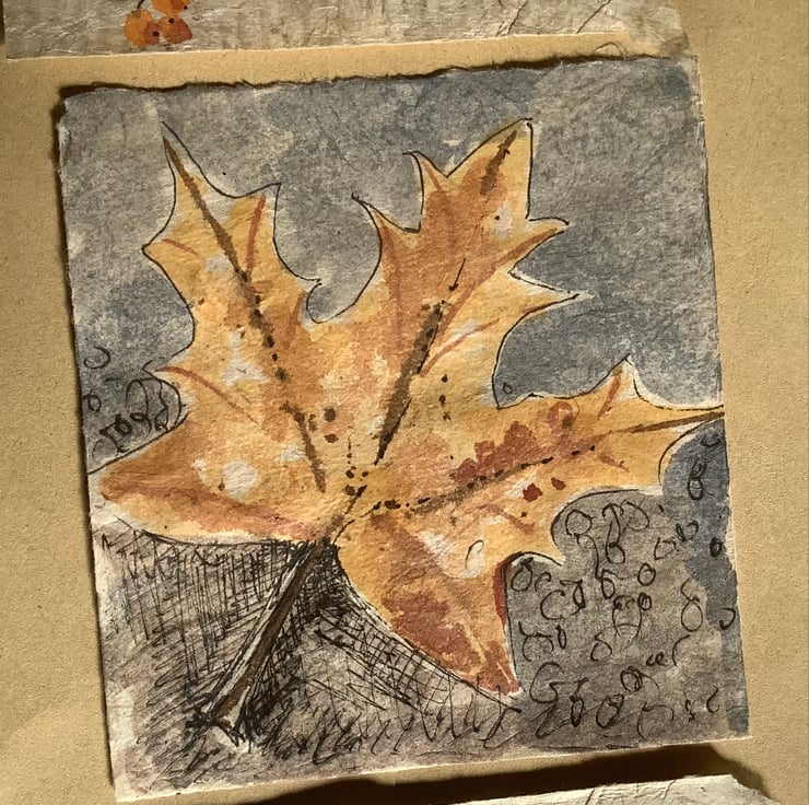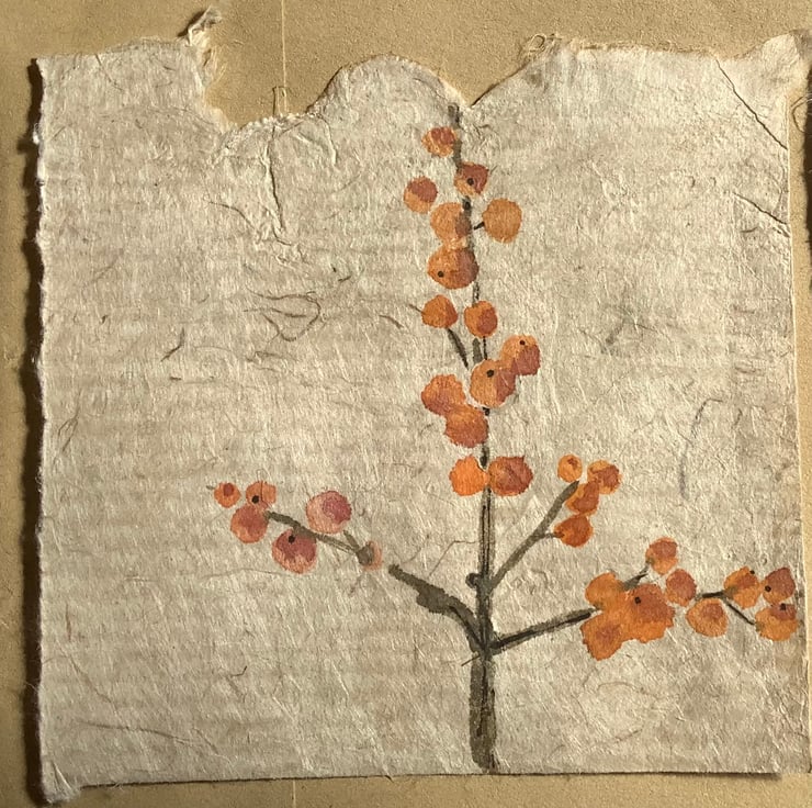 These little pictures are painted on handmade paper and are approximately 3” square each.