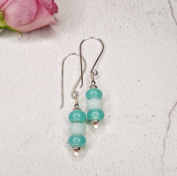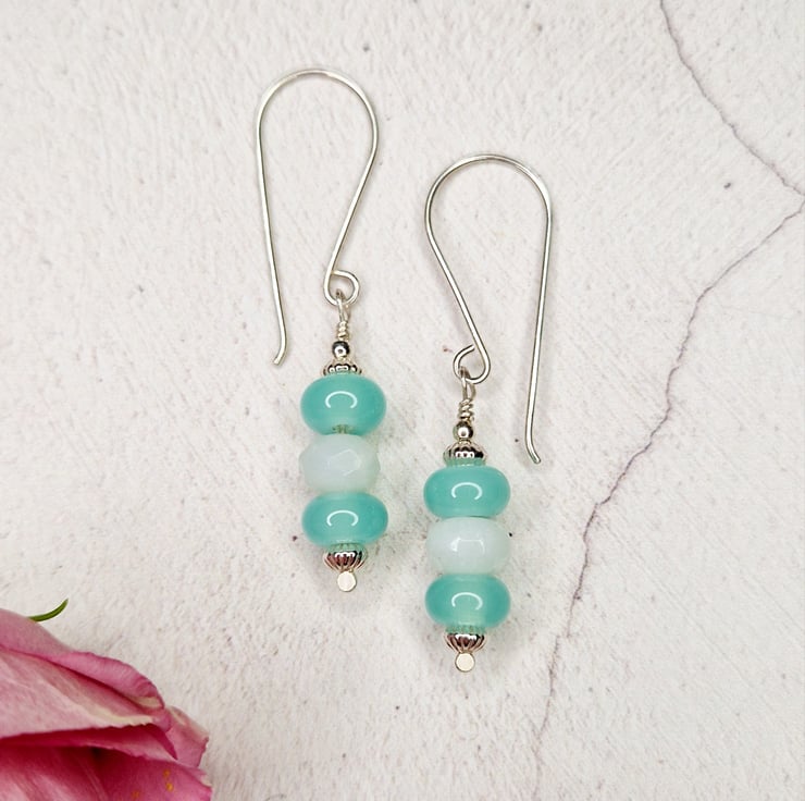 Pale teal coloured lampwork glass beads and amazonite earrings.