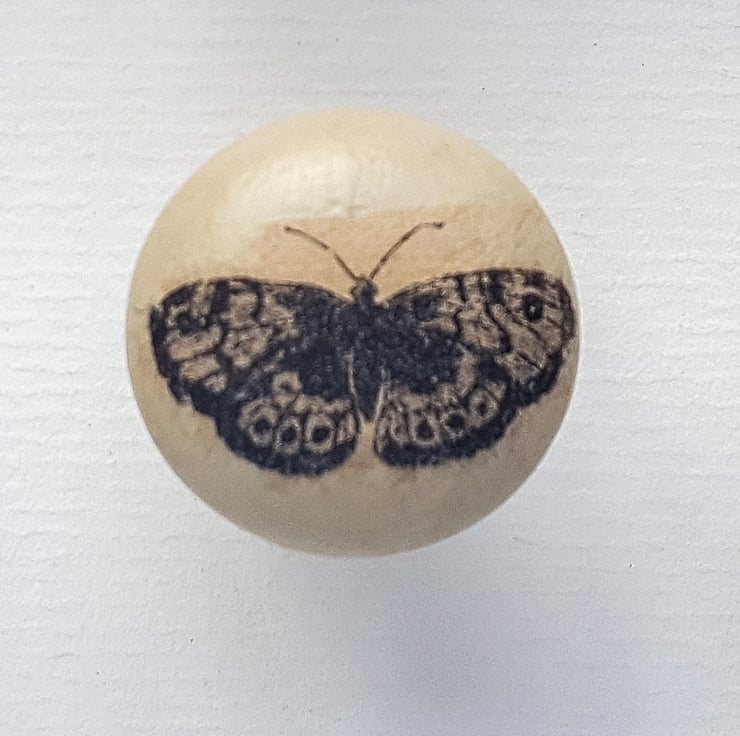3cm wooden drawer knobs, Up-cycled with butterfly decoupage beige and black