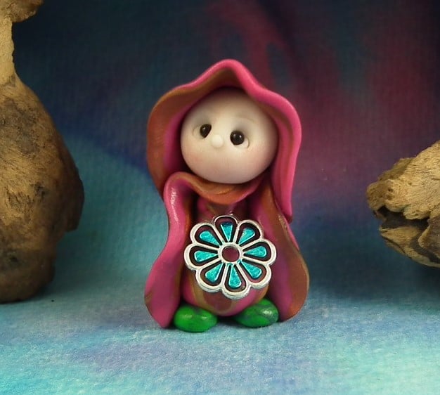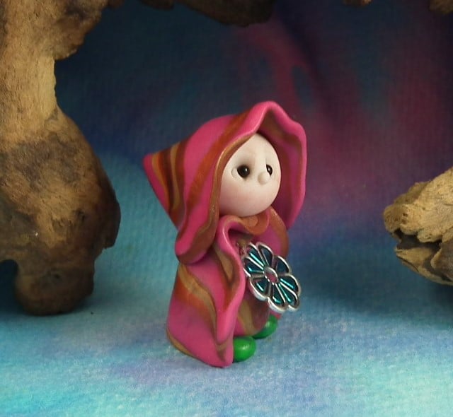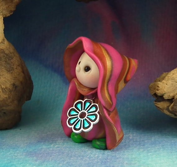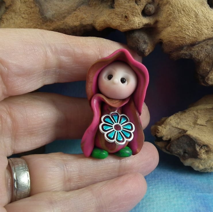 This is a 'one of a kind' creation having been entirely handmade without the use of moulds here at my studio on the Sussex Coast. Modelled with artist blend polymers, blushed before sealing with lacquer, Freya has sparkling black onyx eyes and variegated robes. Freya the Garden Gnome is just one and a half inches tall.