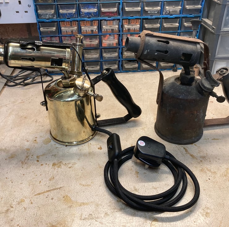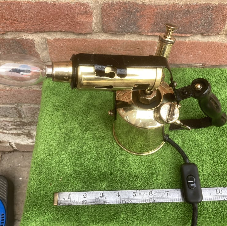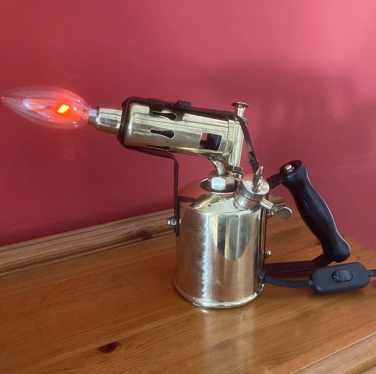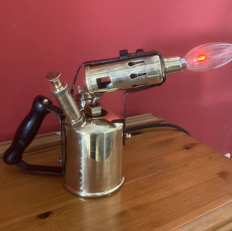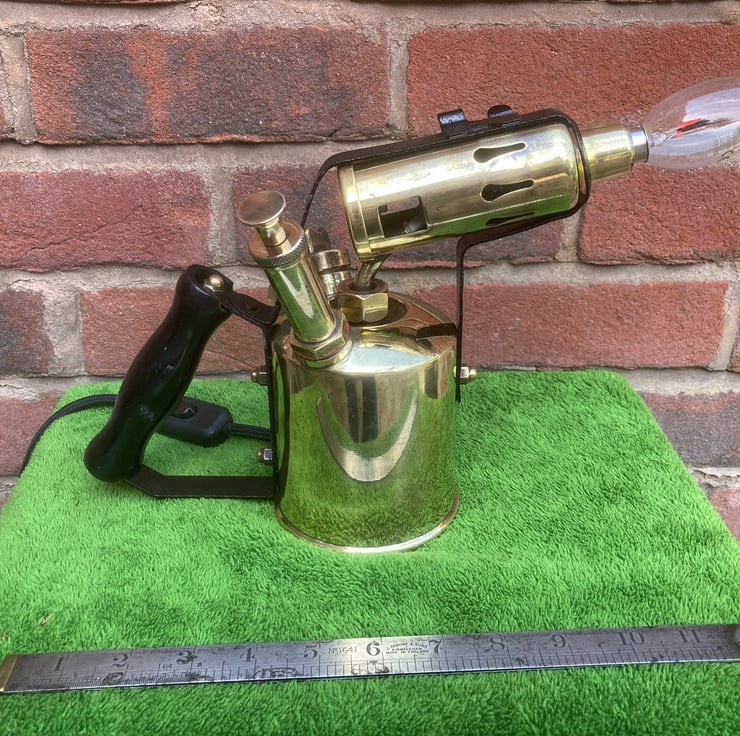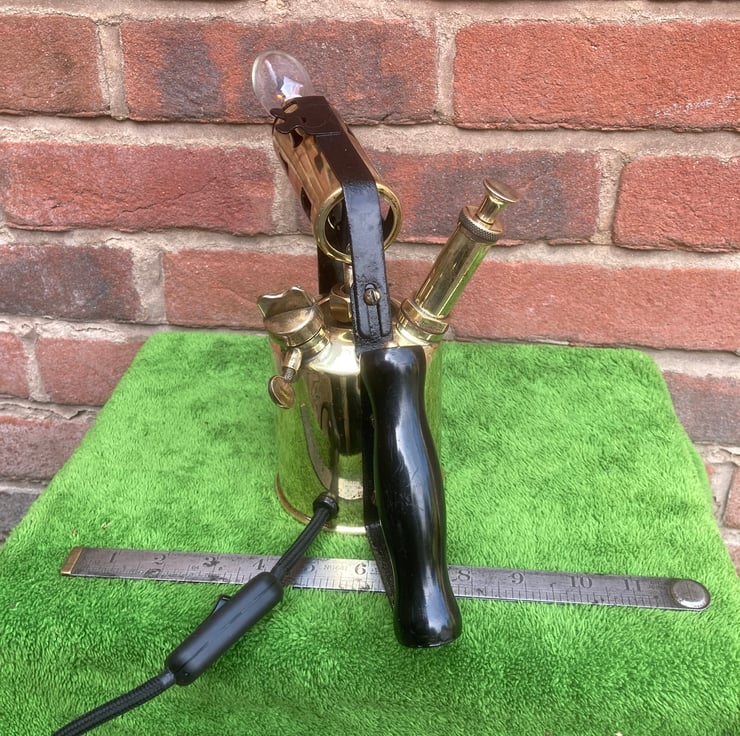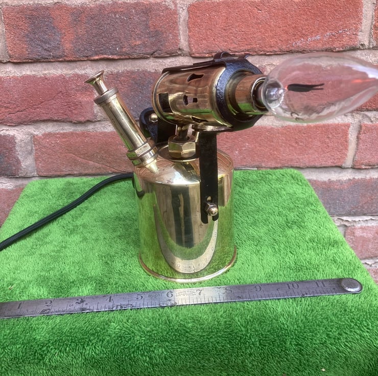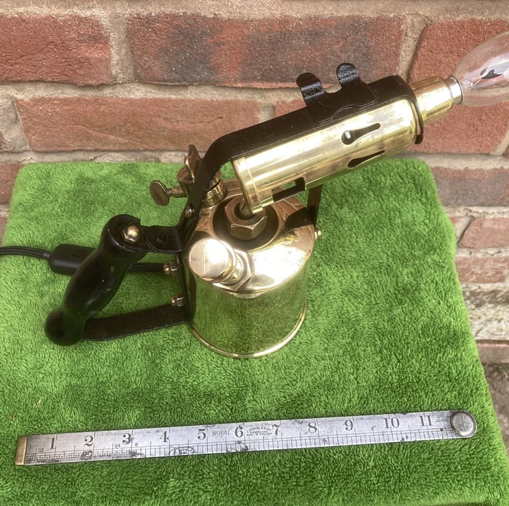The LED flame effect bulbs that you can buy look so good installed in place of the flame of old brass blowlamps, this is the sixth that I have made and each one looks great! The other five sold quickly so get it while it’s still here!