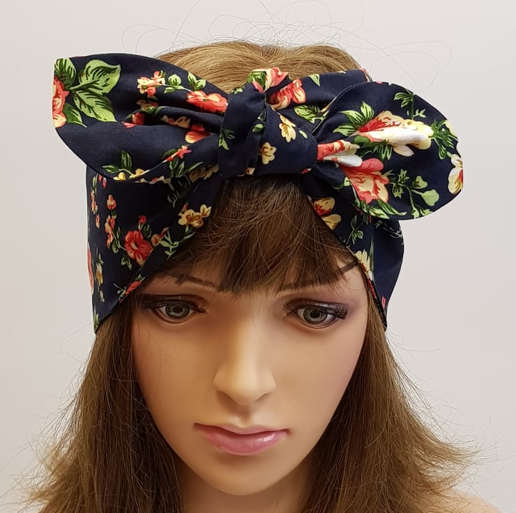 This rockabilly headband is made from printed 100% cotton fabric. The headband is NOT WIRED, NOT STRETCHY, UNTIED.