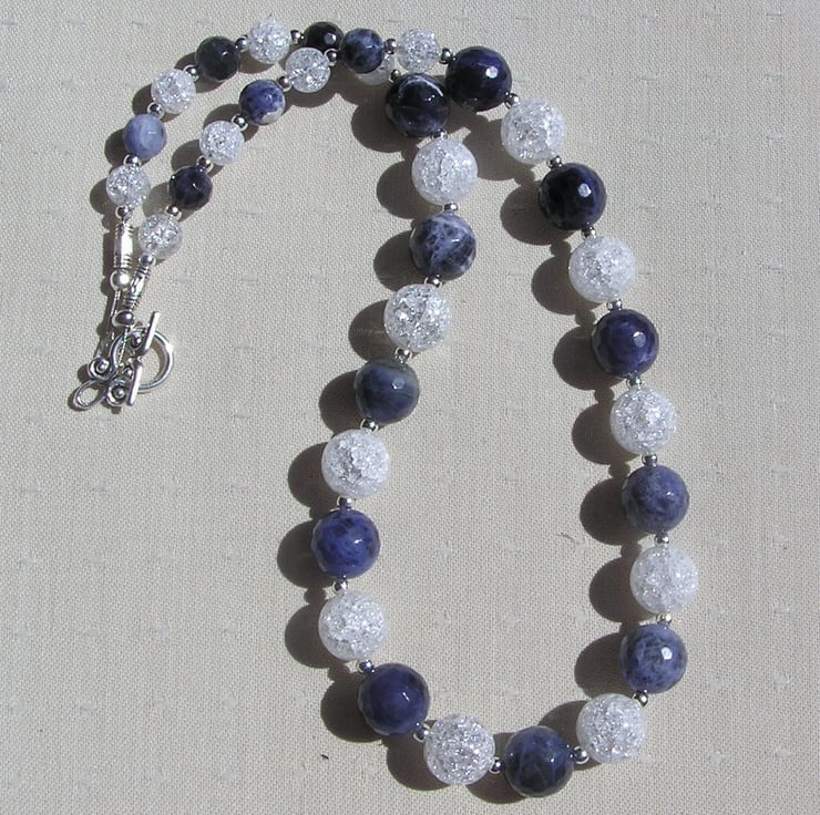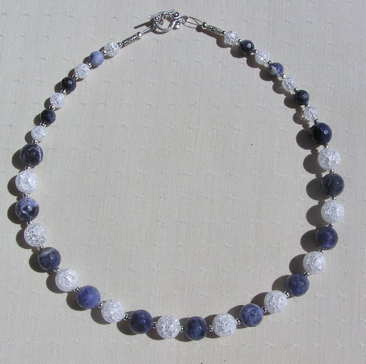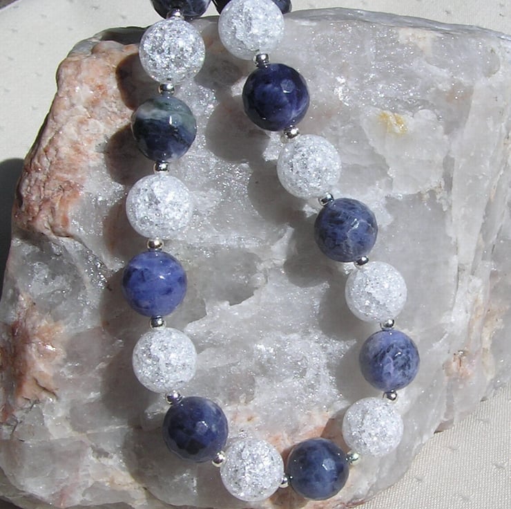 This Stunning Sumptuous Necklace is made from alternating Blue Sodalite and Crackled Clear Quartz chunky round beads and for that added extra sparkle tiny Silver spacer beads - a Gorgeous Dreamy combination that will look stunning either worn casually or with something more Elegant for a Special Evening out