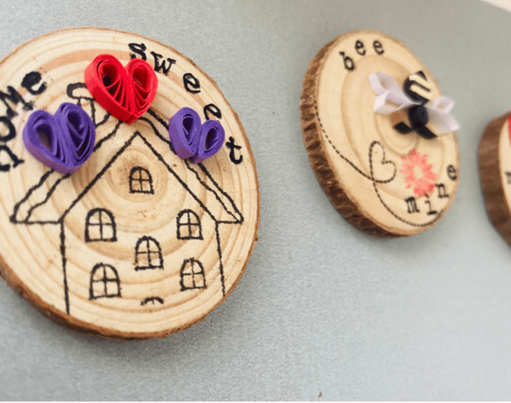 I have for sale these really beautiful decorated set of 3 wood slice magnets.