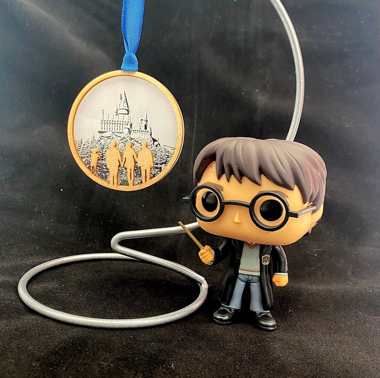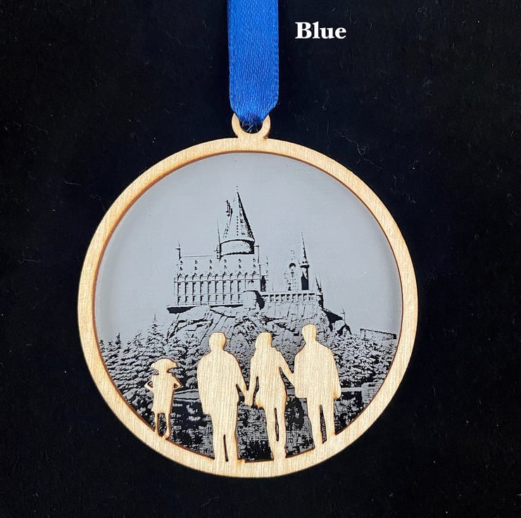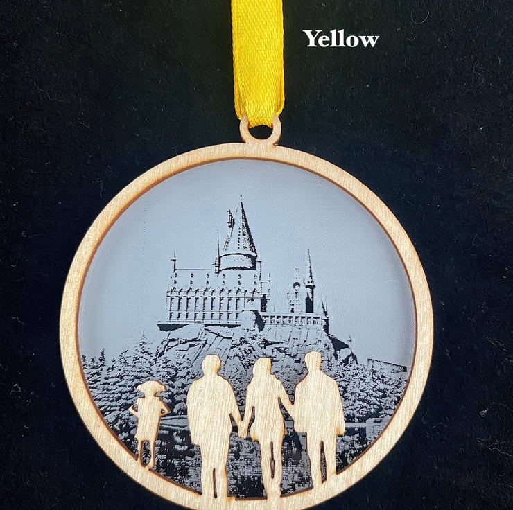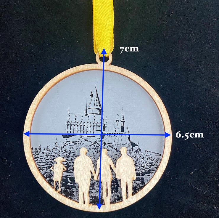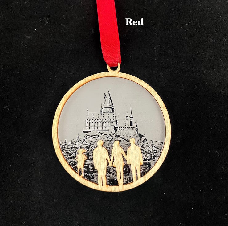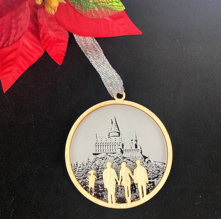A clear acrylic and wood decoration engraved with a magical castle. A beautiful wizarding gift for witches and wizards and muggles! Hang it on the Christmas tree or it can be displayed all year round.