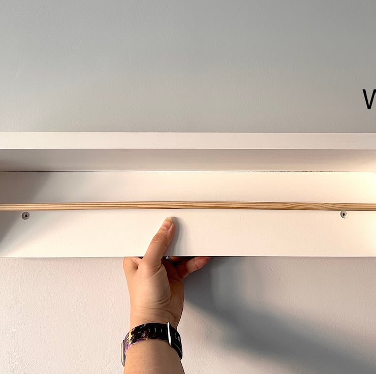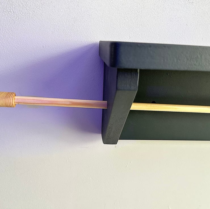 A shelf to show of your trophies and a wooden dowel which can be pulled out to add medals to hang.