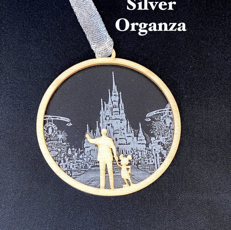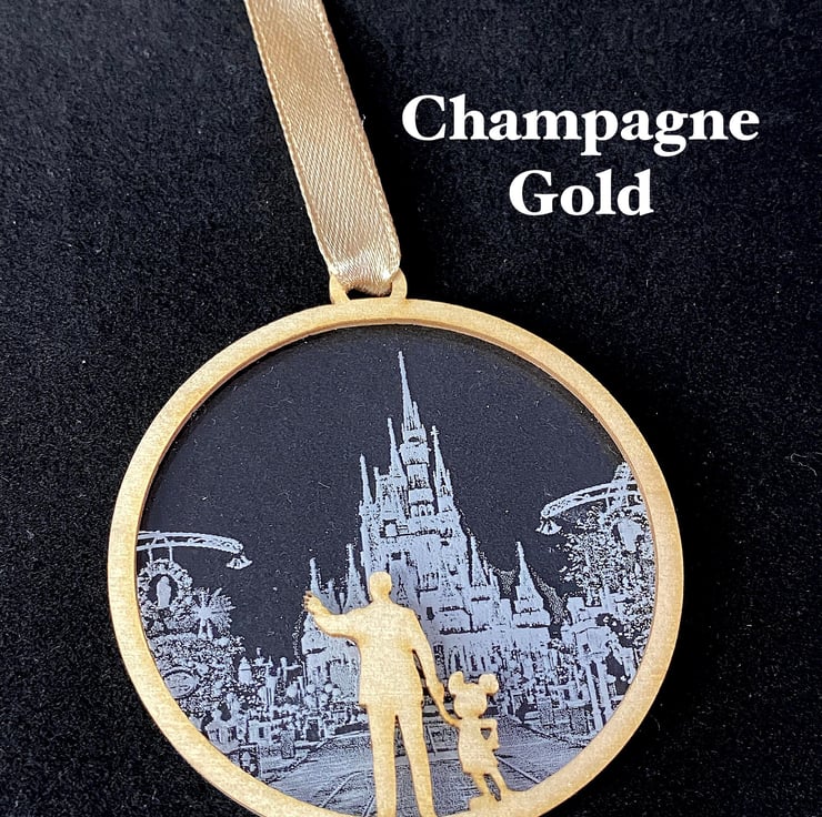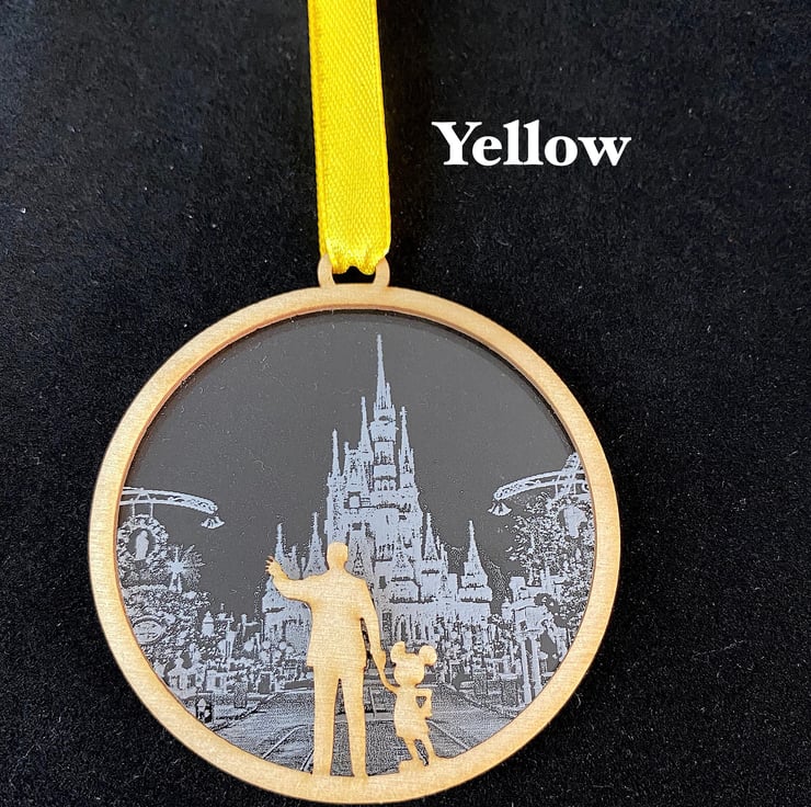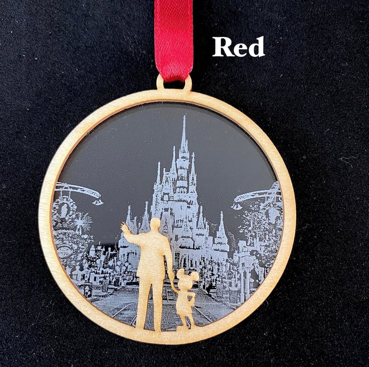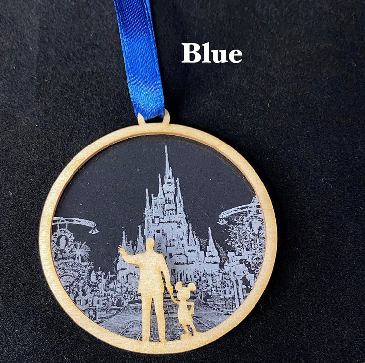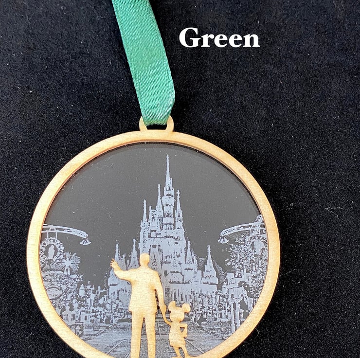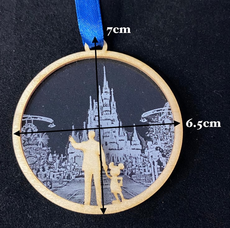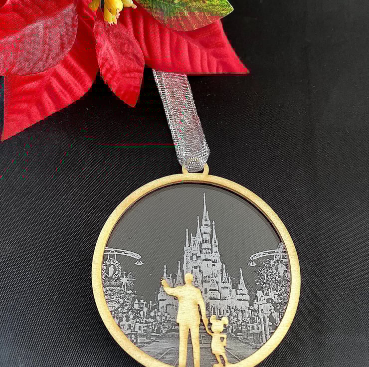 An acrylic and wood decoration engraved with a magical castle. A beautiful bauble for the Christmas tree or these can be display all year round!