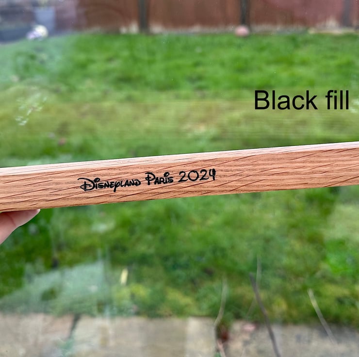 Standard: Text is engraved into the wood so you can see the grain. Depth and colour may vary depending on the wood.
