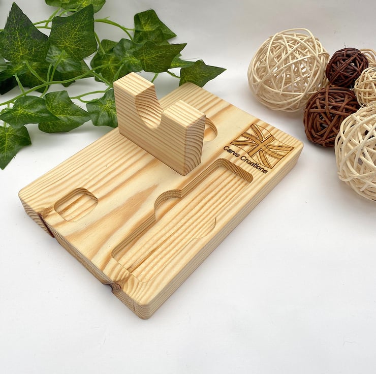 A wooden mini hot glue gun storage holder with space for extra glue sticks. The hot glue gun shown in the picture is a mini glue gun (from Hobbycraft) which holds 7mm glue sticks. A wood stand to help keep keep the glue gun stood and safe while enjoying crafting or some DIY.