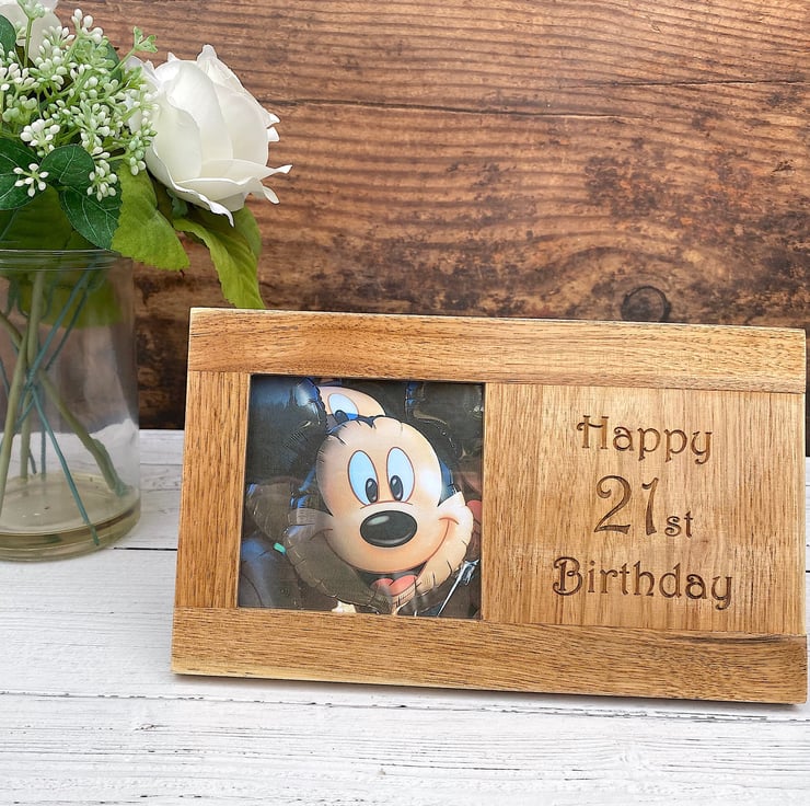 These beautiful oak photo frames look great in any home and it has a built-in stand.
