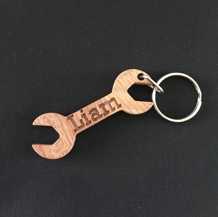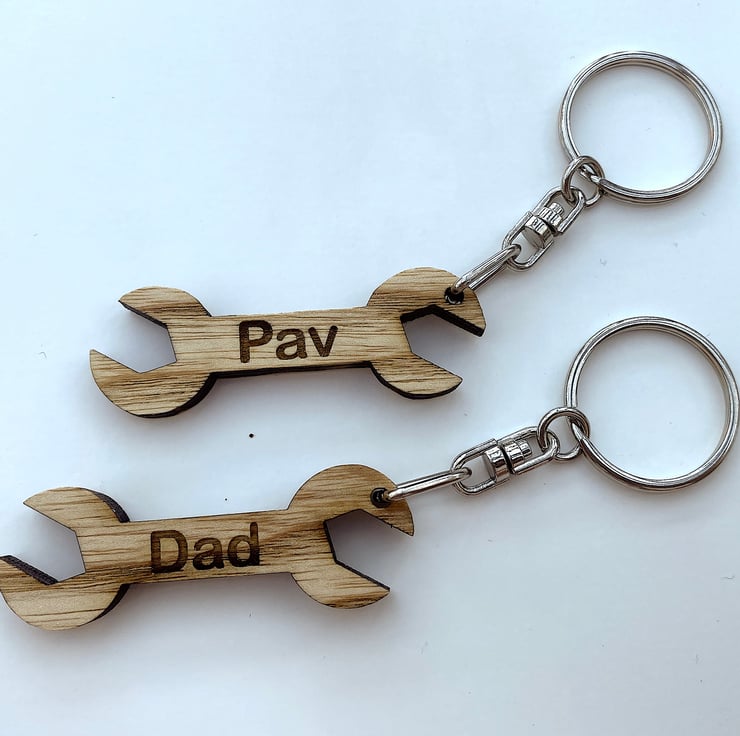 A fun gift for men, great as birthday gifts or for Father's Day. A unique personalised gift for an engineer, a mechanic, or someone who loves a bit of DIY. Whoever this personalised spanner keyring is for they will love it. Engrave with a name or nickname.