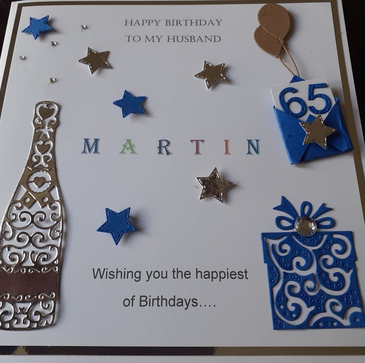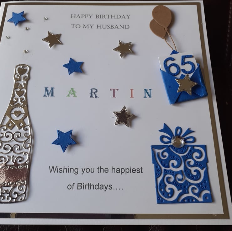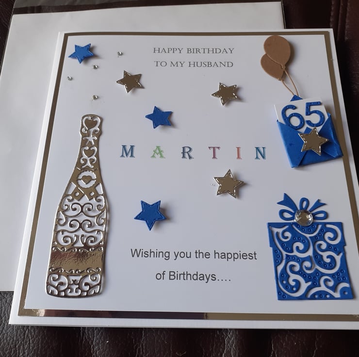 This is a Handmade Personalized Any Age Happy Birthday Card, it is 8ins x 8ins in size. Inside verse included. Supplied with envelope in a cello bag. Please add personalized details when ordering.