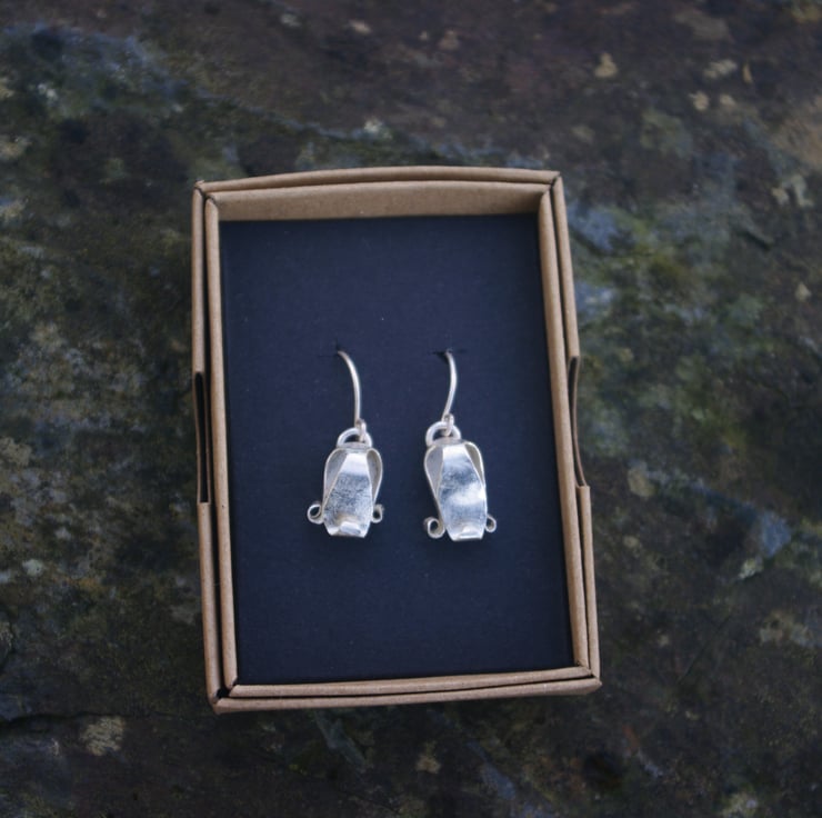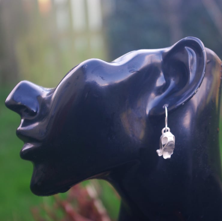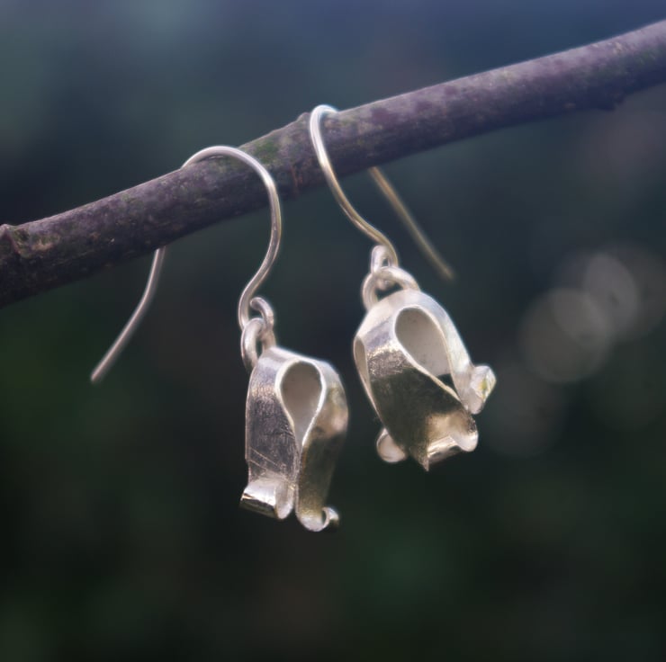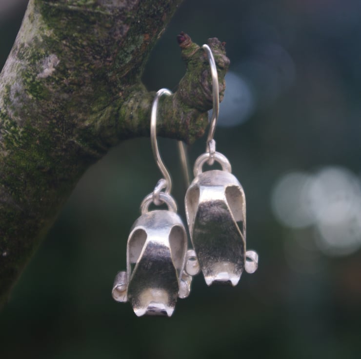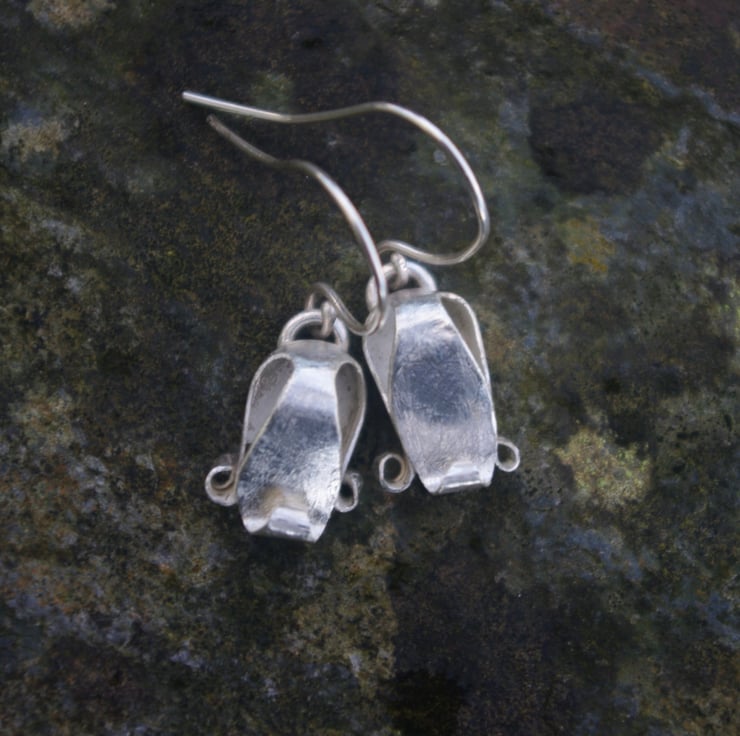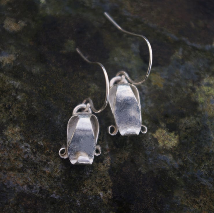 Paying homage to the gorgeous bluebell, I have made silver bluebell dangle earrings using eco -sourced sterling silver sheet ; cut out in one piece with a flat back piece.