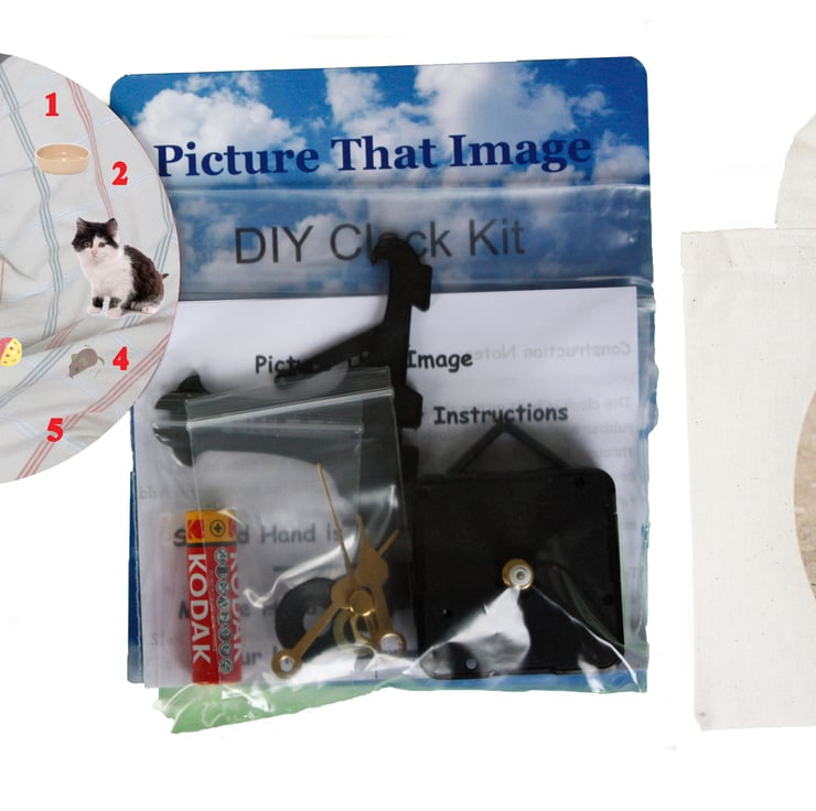 The clock face is from an original design by Picture That Image and is printed on to a 12cm Aluminium clock face. Everything that you need to build this unique clock is included in the pack, including a stand and a battery. It comes with a full set of instructions with an easy to follow diagram. It can be used with the stand or it will hang on the wall on a picture hook. It will make an ideal present and is easy to construct. (It does contain small parts so is not for very young children)