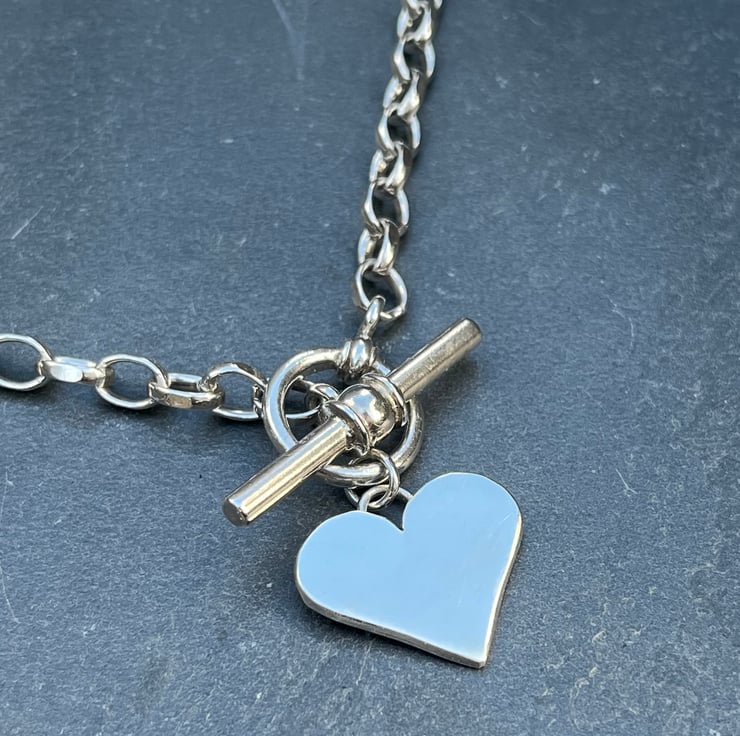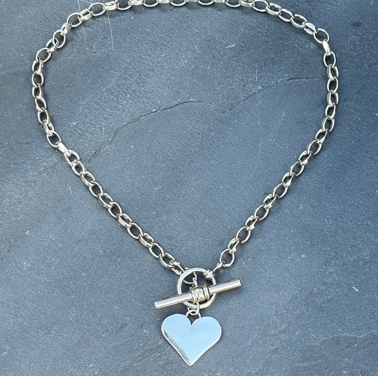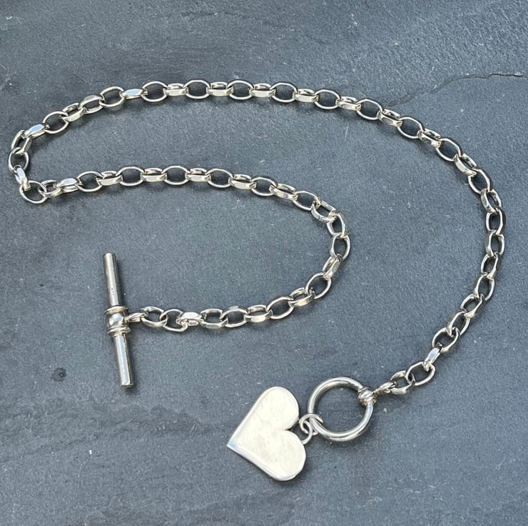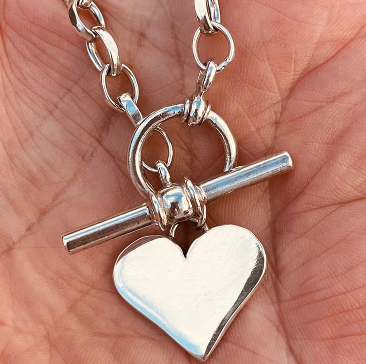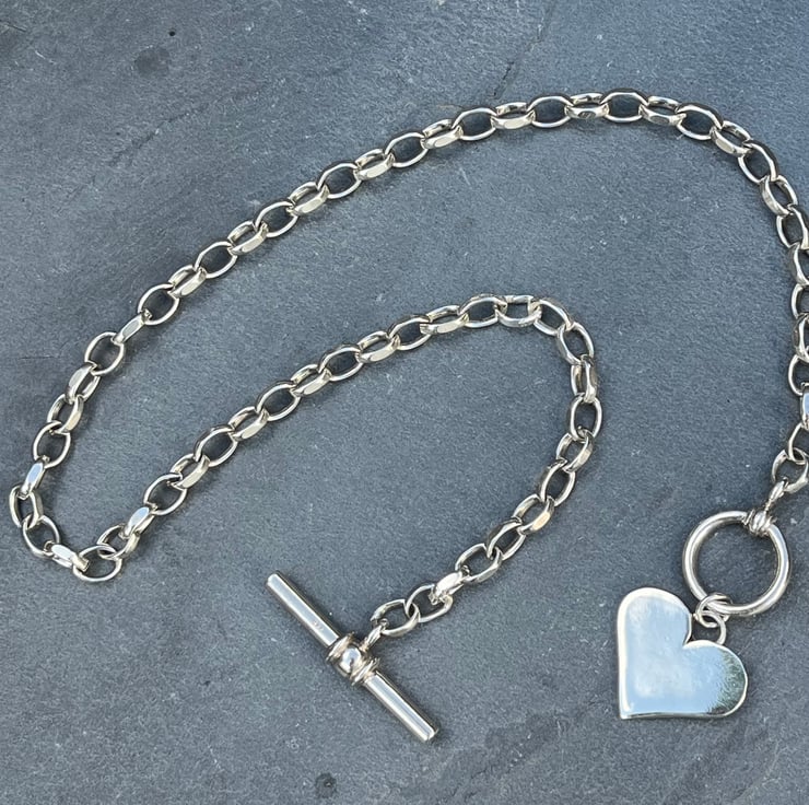 This silver heart fob necklace is made from Sterling silver. The heart measures approximately: 2cm wide. The necklace does up by threading the t bar through the ring. The chain links each measure approximately: 7mm long and the whole chain measures approximately: 16.5 inches in length but if you need a different length, please don’t hesitate to let me know at Checkout.