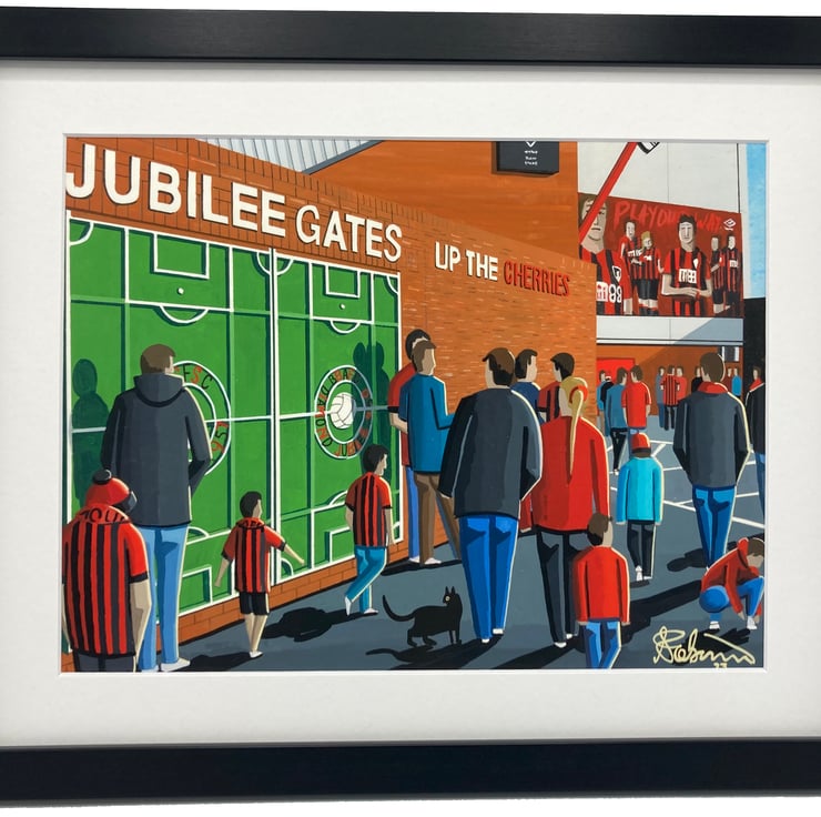 Titled ‘Mates by the Gates’ this is a unique A.F.C Bournemouth print direct from myself the artist. My artworks are a celebration of the match day experience and of stadium architecture.