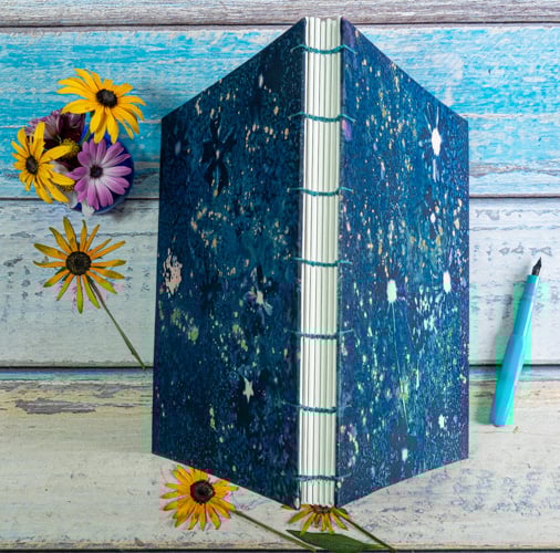 I used Coptic stitching to bind the book together. Coptic binding means that the book will lie completely flat when opened, which makes it perfect for journaling or sketching.