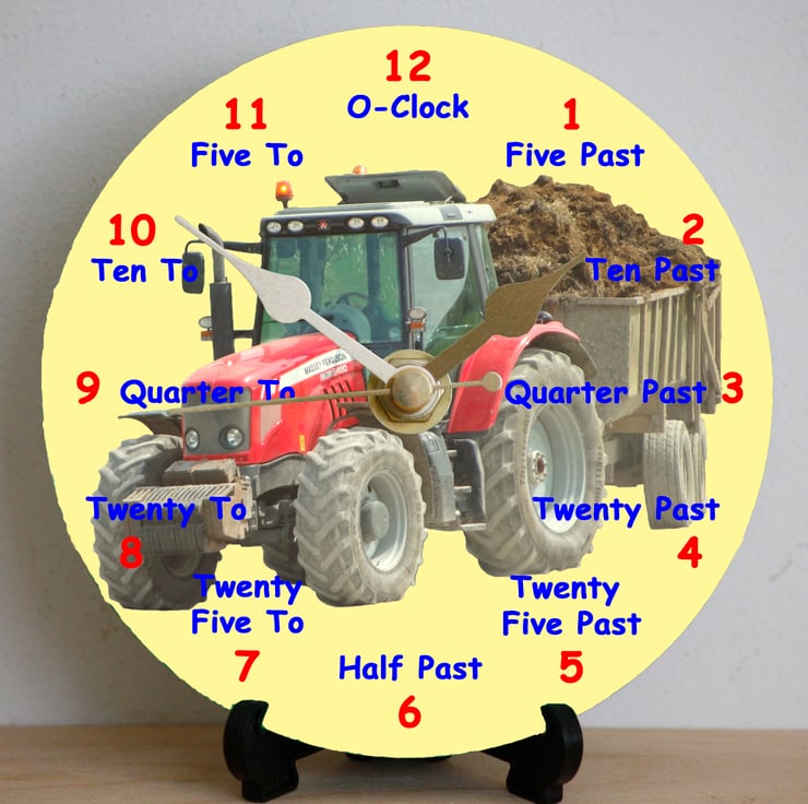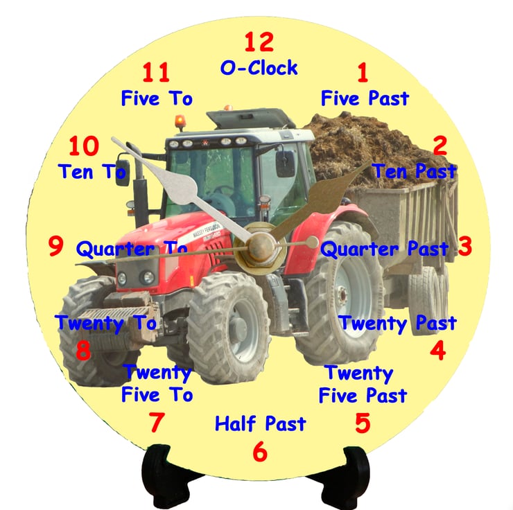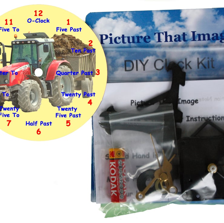 Everything that you need to build this unique Tractor clock is included in the pack. The clock can be hung on a wall or stood on a desk by using the stand provided.