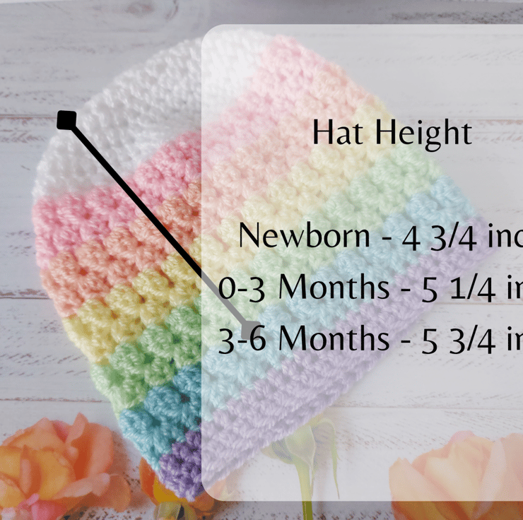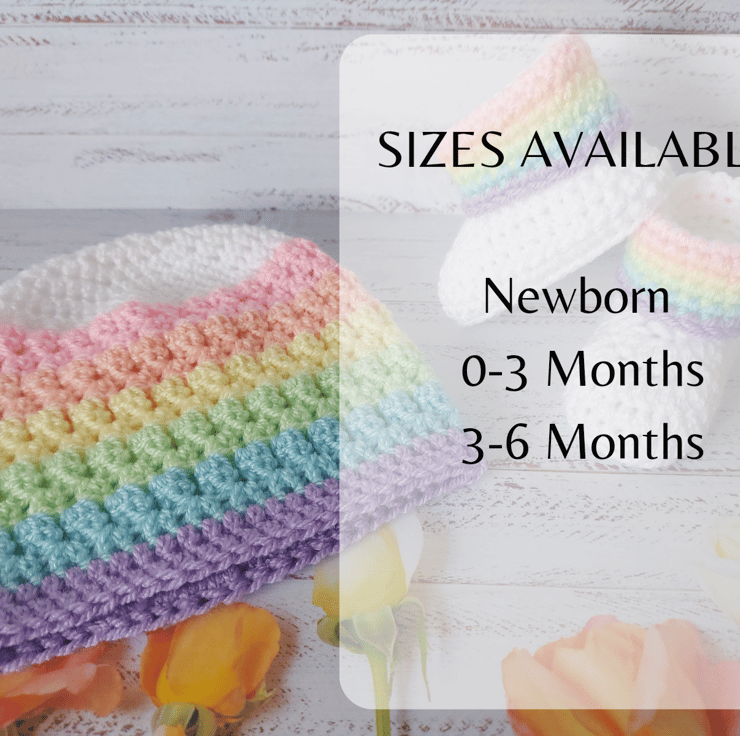There are 3 sizes available as a set, the hat will stretch approx 1 inch, booties stretch approx 1cm.