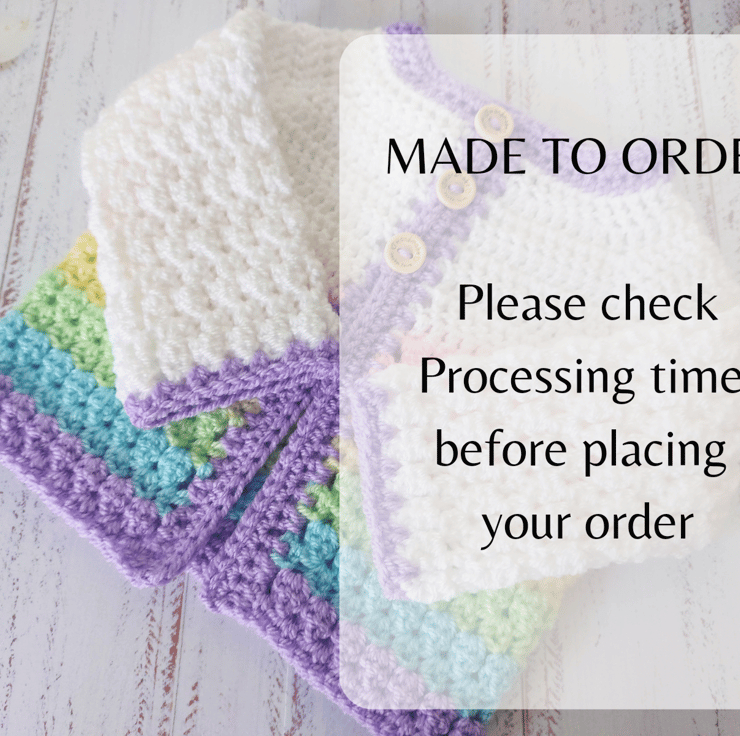 What a great newborn gift idea to keep a little one warm and cosy. Sizes start from Newborn up to 6 months in this crochet baby set, which includes a cardigan and matching booties and hat.