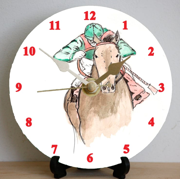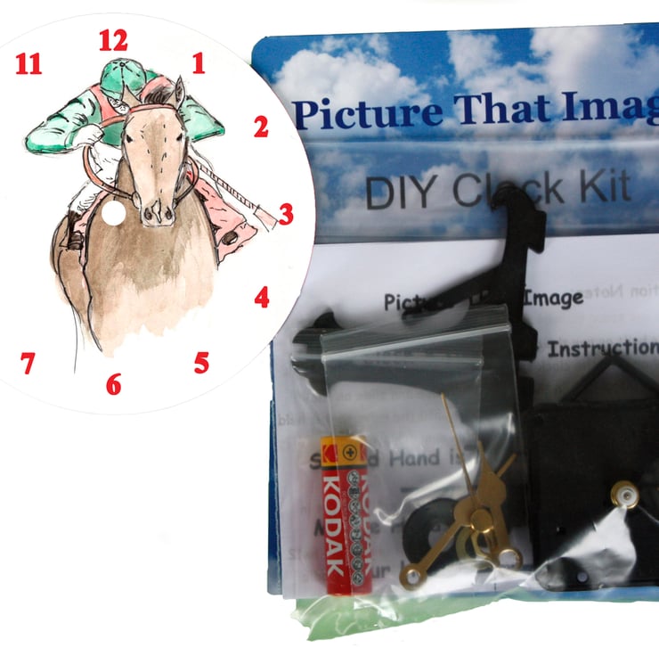 Everything that you need to build this unique Horse Racing clock is included in the pack. The clock can be hung on a wall or stood on a desk by using the stand provided.
