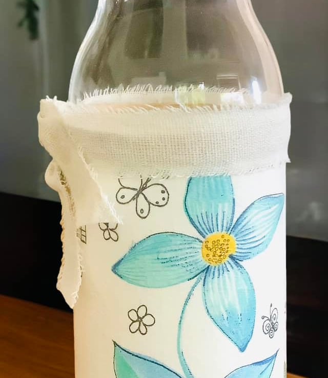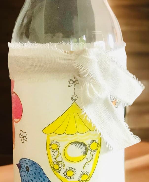 The image has been applied to a primed glass using the art of Decoupage and finished with clear varnish along with a linen ribbon. The Vase/Carafe will arrived gift wrapped.