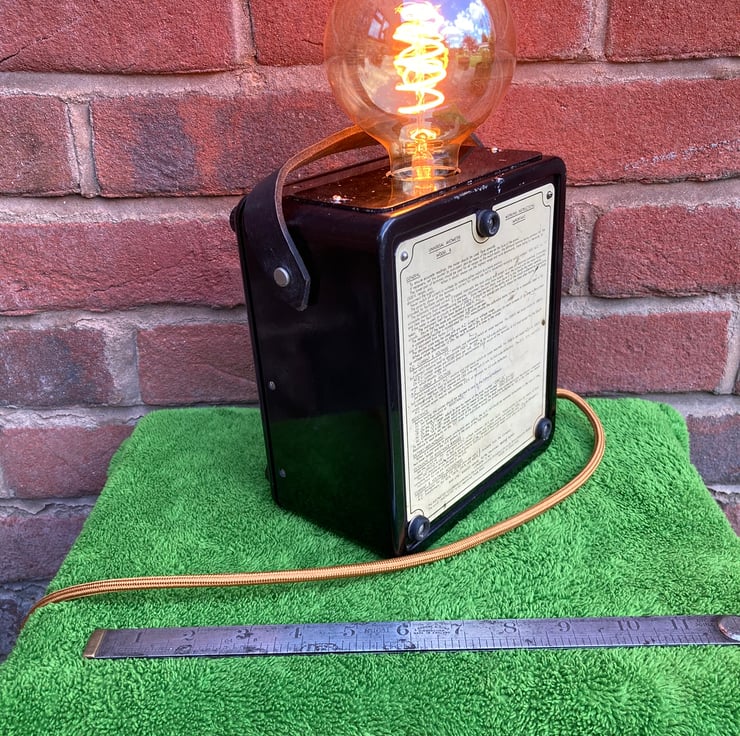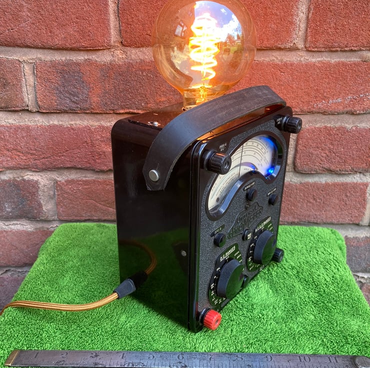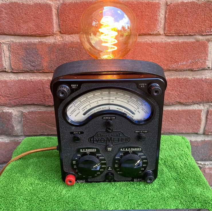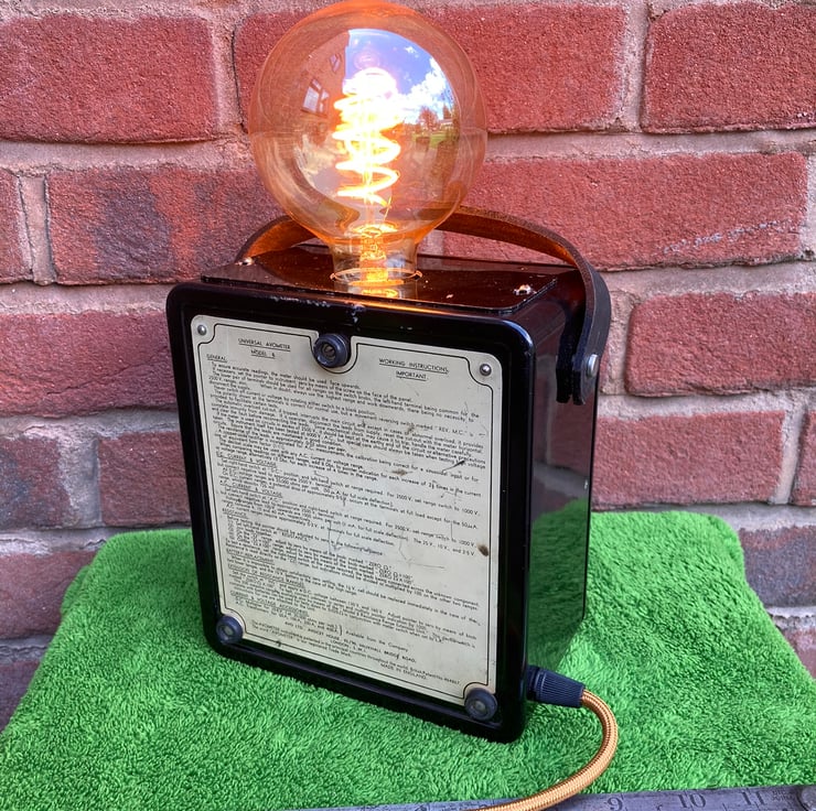 These AVO Bakelite electrical test meters have such a distinctive gothic look that when I saw this one I knew it would make a stunning conversation piece lamp to gently light your room with a vintage steampunk glow.