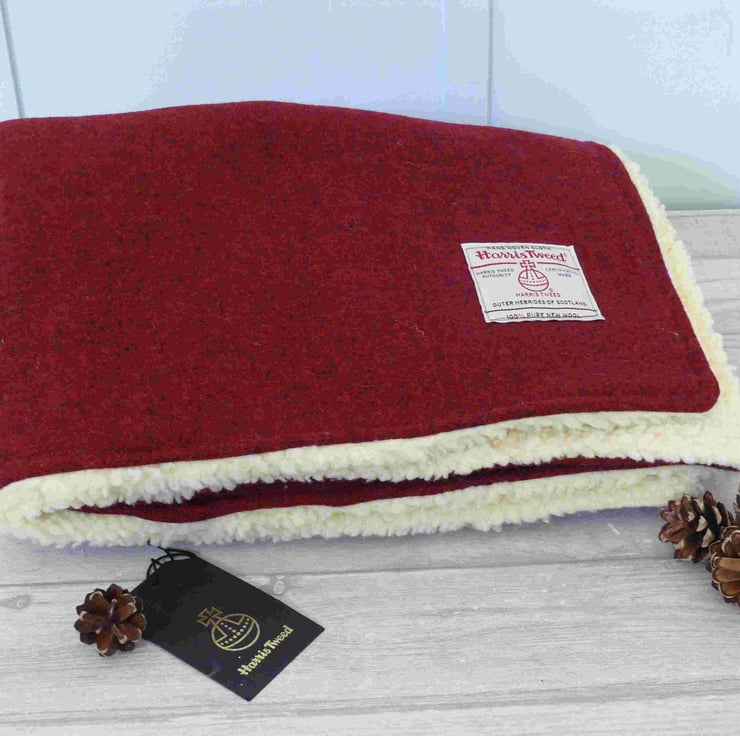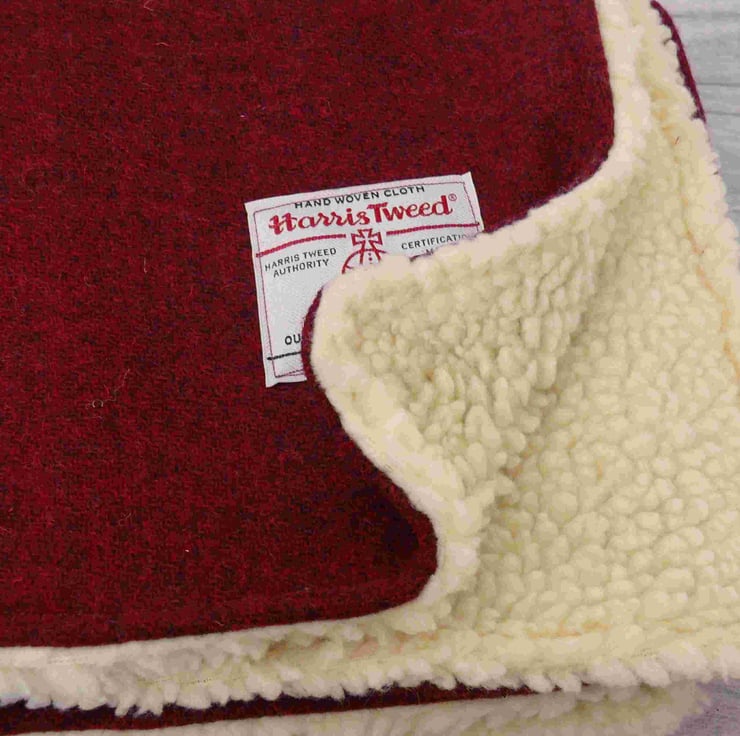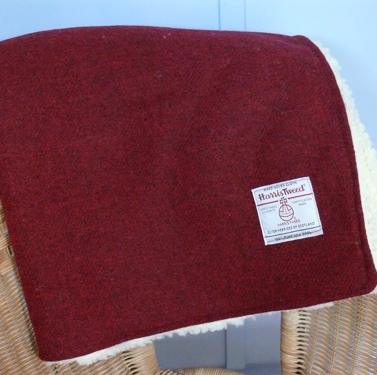 One handmade Lap Blanket , using Haris Tweed plain red and black tweed lined with fleece.