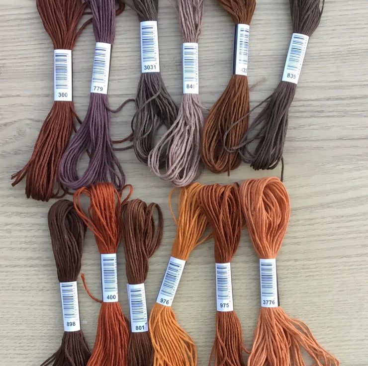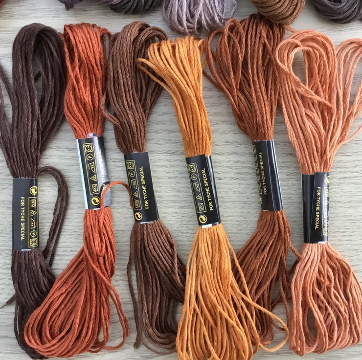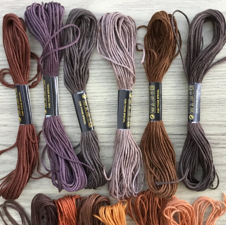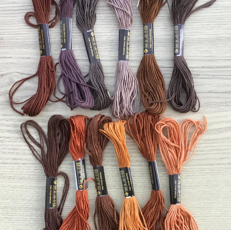 Brown Embroidery Bundle! 12 Sheins of various brown tones Tyche Special embroidery or cross-stitch threads.